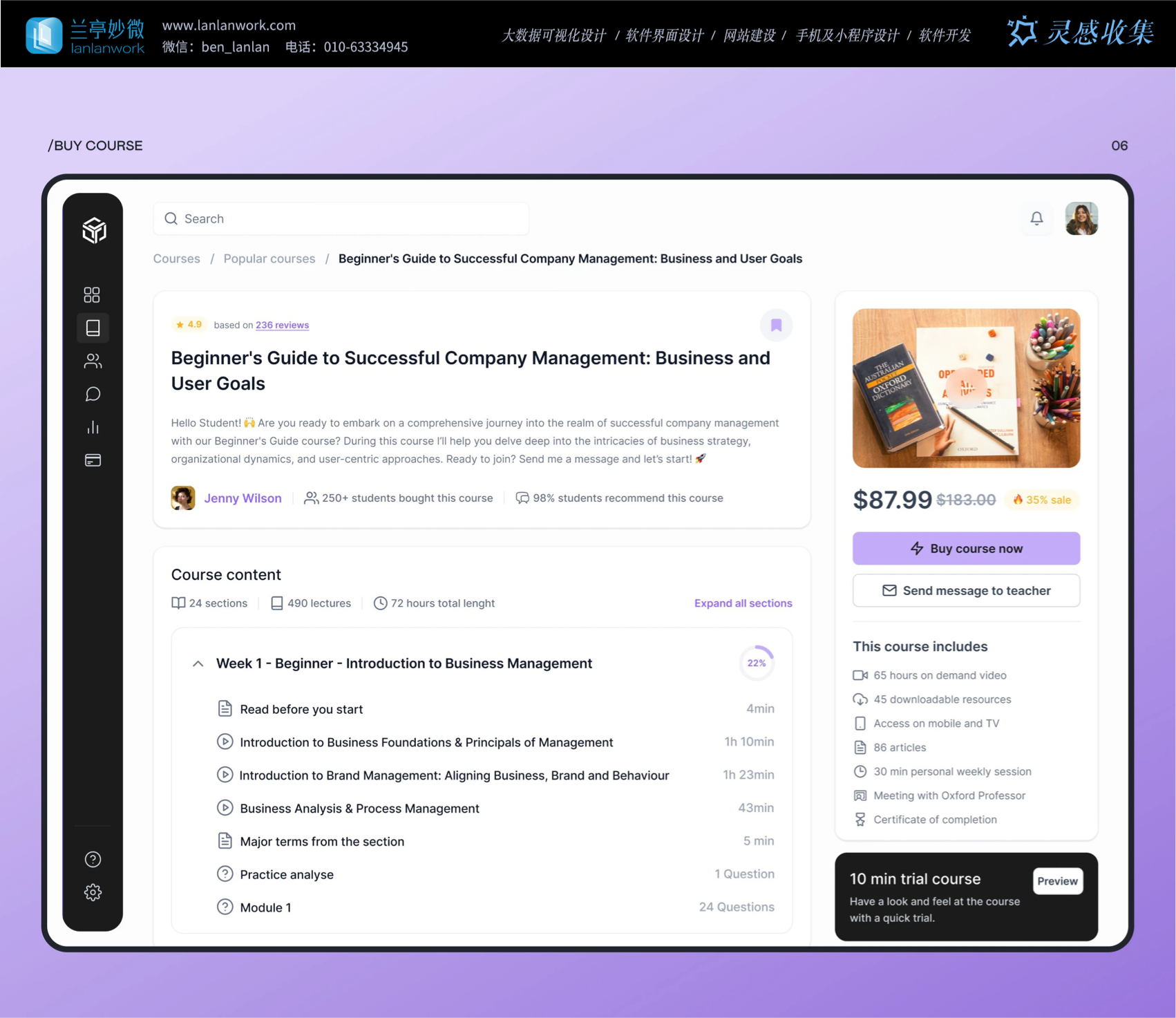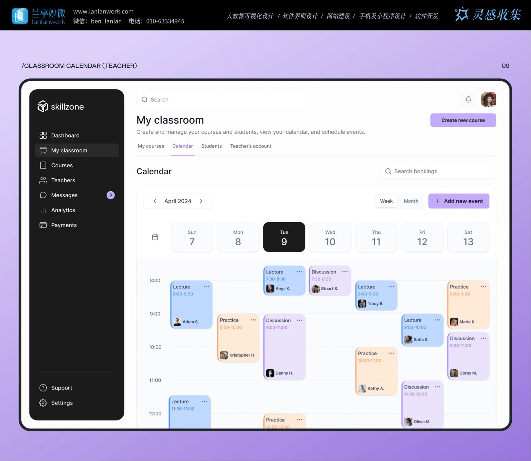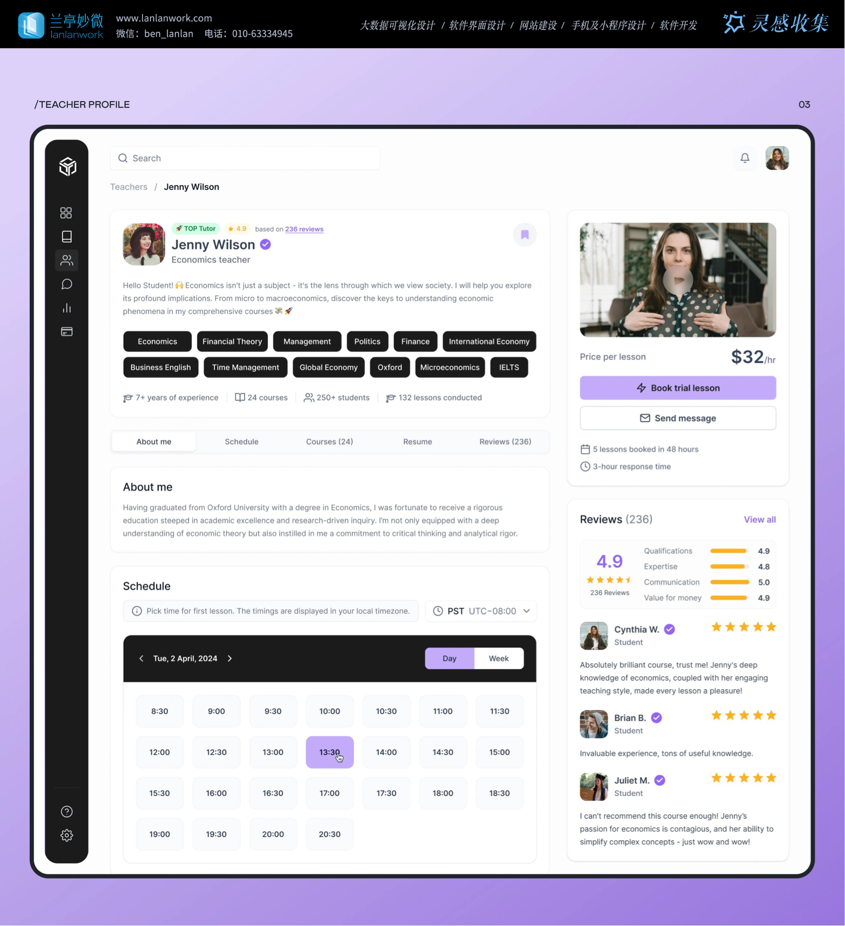 Skillzone 選用柔和的紫色為主色調(diào),紫色常給人智慧、有創(chuàng)造力的的感覺(jué),很符合教育的特點(diǎn)。再搭配簡(jiǎn)潔的黑白
