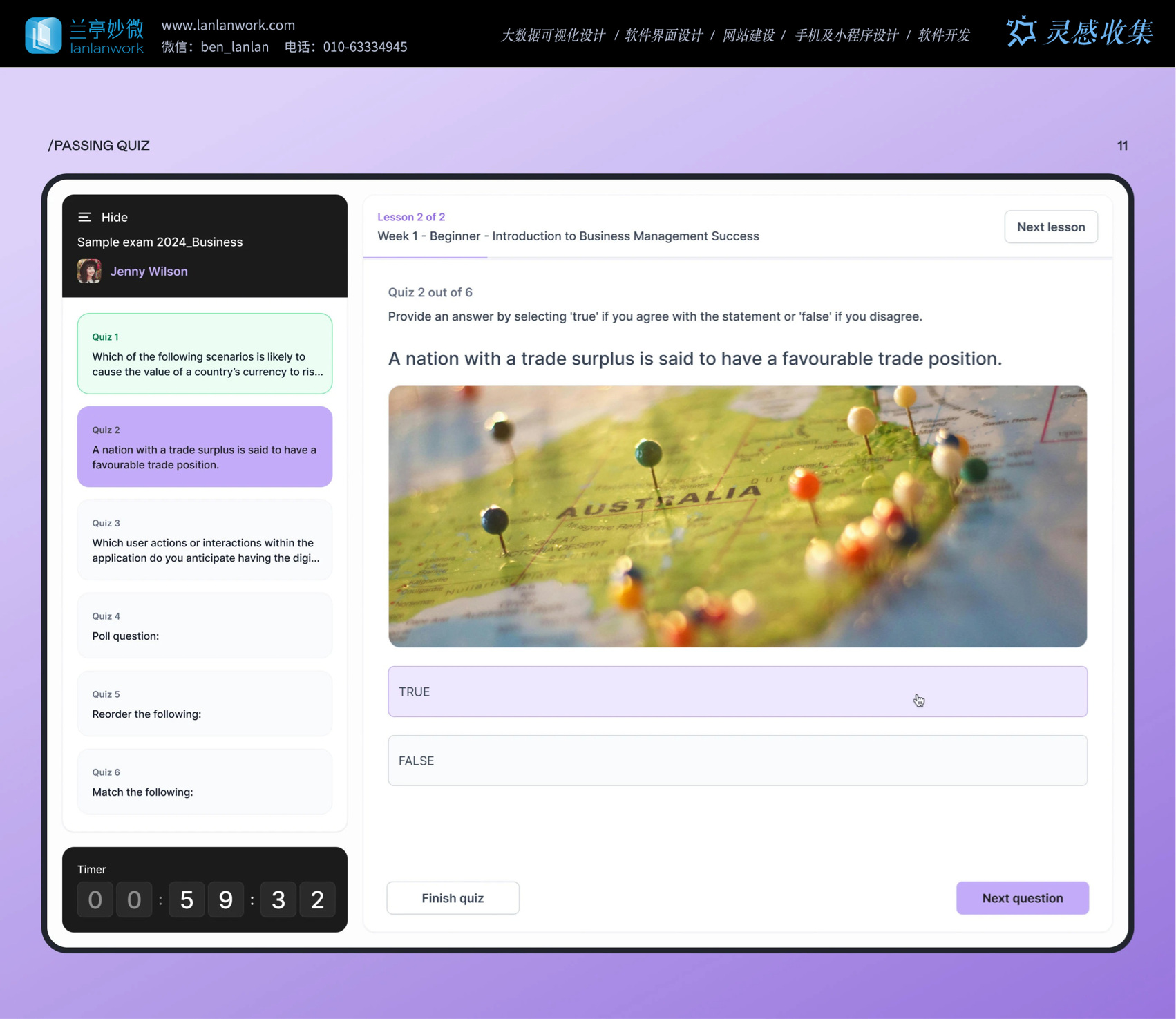 交互設(shè)計(jì)處處為用戶考慮。就說(shuō)測(cè)驗(yàn)功能,學(xué)生答題頁(yè)有 "Retakeequiz (重新測(cè)驗(yàn))""Next lesson (下一課)"