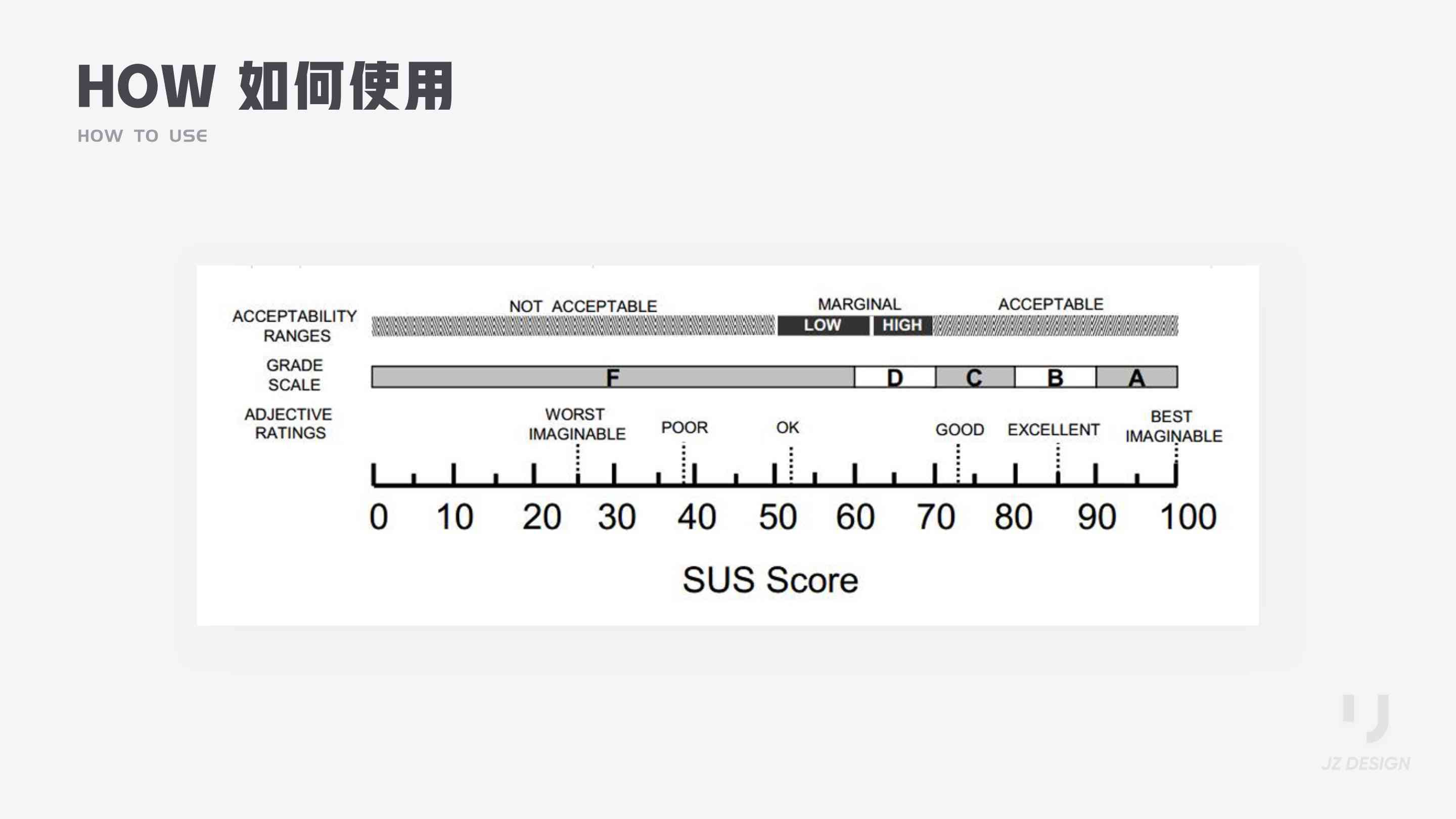 我將其翻譯過后得到中文表,可以大體上感知得出的SUS分?jǐn)?shù)對應(yīng)的用戶可接受范圍。