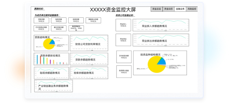 右側(cè)是客戶給的原型,只是把要展示的數(shù)據(jù)簡單羅列了一下??紤]到大屏應用場景,比如公司會議,集團視察,行業(yè)參觀等,都是宏觀數(shù)據(jù)展示為主。所以在設(shè)計時不僅要考慮美觀性,更要考慮到整體的交互布局以及交互方式,確保關(guān)鍵數(shù)據(jù)和指標在界面上以醒目的方式呈現(xiàn),以便用戶快速識別和理解。設(shè)計清晰簡潔的布局,避免信息過載,使用戶能夠輕松找到需要的信息。